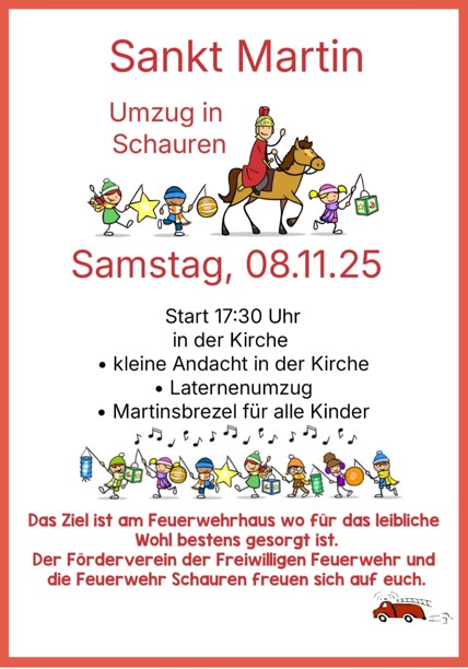Für Samstag, 27. September 2025 ab 17 Uhr lädt der Heimat- und Kulturverein Schauren e.V. herzlich zum 7. Schaurener Dorftreff am Gemeindehaus ein.